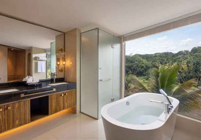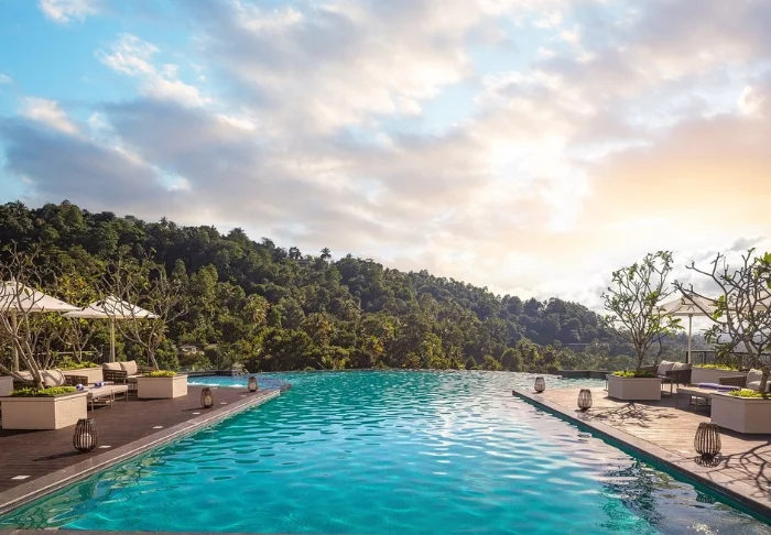 Im Zentrum der Hoteleinrichtung stehen Luxus und Erholung: Ein stimmungsvolles Spa, ein modernes Fitnessstudio mit atemberaubendem Ausblick sowie ein eleganter Poolbereich bieten Ihnen alles, was Sie für Ihre Erholung brauchen. Nach einem erlebnisreichen Tag voller Entdeckungen in Kandy ist dies der ideale Ort zum Krafttanken. Der einladende Infinity-Pool eröffnet faszinierende Blicke auf grüne Hügel, während bequeme Liegen und eine Poolbar mit kühlen Getränken vollkommene Entspannung versprechen.