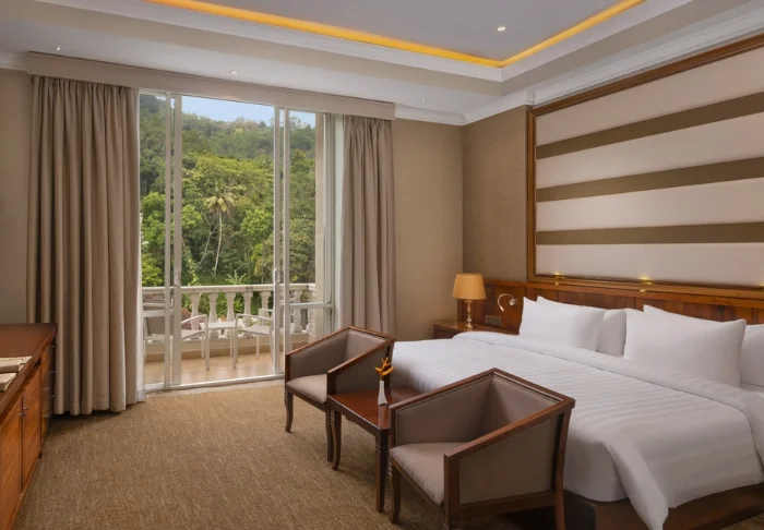 Das Hotel liegt leicht erhöht über der Stadt und bietet Ihnen einen spektakulären Panoramablick auf den Kandy Lake und die umliegenden Berge. Hier finden Sie Ruhe und Erholung – und dennoch erreichen Sie das lebhafte Stadtzentrum mit seinen Restaurants, Geschäften und Sehenswürdigkeiten bequem zu Fuß in nur wenigen Minuten.