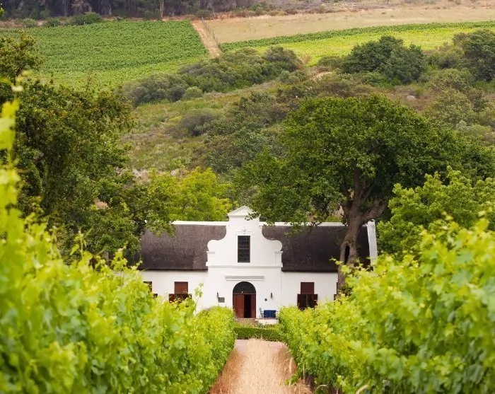 Gestern noch blaugraues Meer, das man fast überall in Cape Town sieht – heute die grünen Weinberge und Häuser im charakteristischen Kap-Holland-Stil, mit den Bergen am Horizont. Diese sind unter anderem auch der Grund dafür, warum sich die Täler im Weingebiet so hervorragend für den Anbau von Wein eignen.