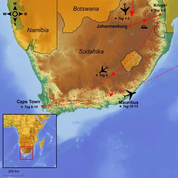 Wussten Sie, dass man bei einer einzigen Reise Löwen und Pinguine beobachten kann? Träumen Sie davon, die Big 5 zu sehen – und Ihren Kindern zu zeigen, wo der Löwenpapa in Wirklichkeit zu Hause ist? Klingt weißer Sandstrand mit Sonnenschirm und azurblauem Meer wie das Paradies für Sie? Möchten Sie der Reise Ihre eigene Note verleihen, ohne selbst alles planen zu müssen? Dann ist diese Reise genau richtig für Sie!