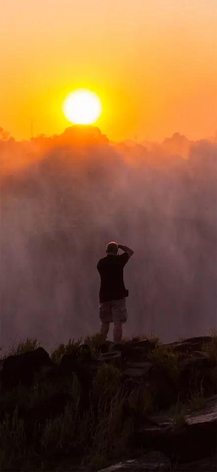Bereits von der Luft aus erhaschen Sie mit etwas Glück einen Blick auf einige der größten Wasserfälle der Welt. Sie gleichen wohl eher einer Wolke, die von der Erde wegschwebt, und ganz falsch ist das auch nicht. Die Wasserspritzer der Wasserfälle spritzen oft mehrere Hunderte Meter in die Luft. Sie bekommen die Gelegenheit, das Gebiet rund um die Victoriafälle ausgiebig zu erkunden, bevor es nach Botswana weitergeht.
