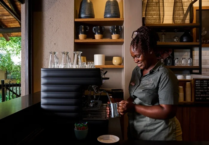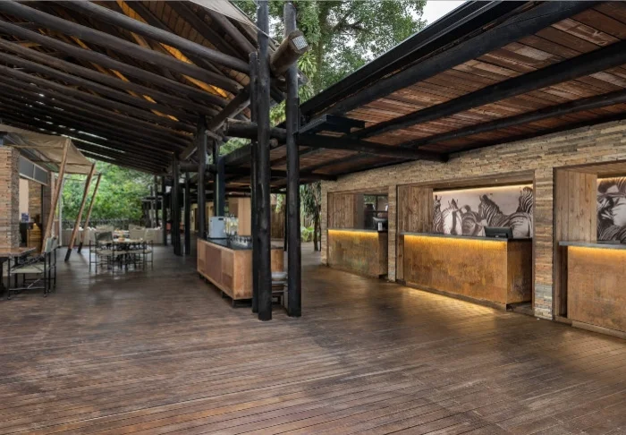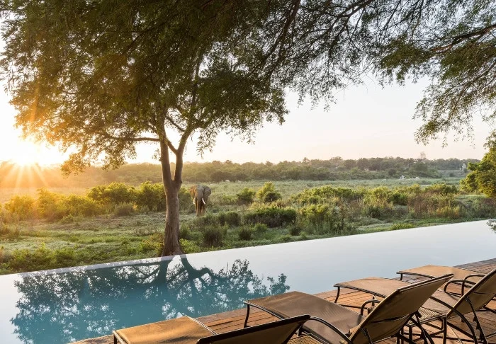 Vom gemütlichen Loungebereich neben einem der Pools blicken Sie direkt auf den Krüger-Nationalpark, auf der anderen Seite des Flusses Sabie. Frühmorgens oder spätabends ist das Licht hier einfach fantastisch. Wenn Sie Glück haben, schlendert sogar eine Herde Elefanten an Ihnen vorbei, um ein Bad im Fluss zu nehmen.