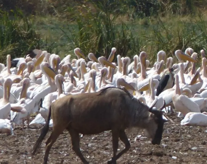 Nach dem Frühstück und dem Auschecken aus dem Hotel geht es in Richtung Lake-Manyara-Nationalpark. Der Nationalpark ist mit seinen 330 km² der kleinste Nationalpark Tansanias, wobei der See je nach Jahreszeit gut zwei Drittel des Nationalparks bedeckt.