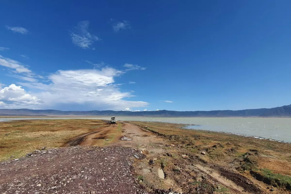 Nachdem wir den Eingang zu Ngorongoro passiert haben, fahren wir zuerst durch ein üppiges Regenwaldgebiet, bevor die Fahrt nach unten entlang der Innenseite des Kraters beginnt. Nach einer aufregenden Fahrt kommen Sie unten im 260 km2 großen Krater an. 600 m über Ihnen erhebt sich rundherum der Kraterrand. Auch wenn Sie jetzt ganz unten im Krater sind, sind Sie in Wirklichkeit hoch oben. Der Kraterrand liegt nämlich auf 2.200 Metern Seehöhe.