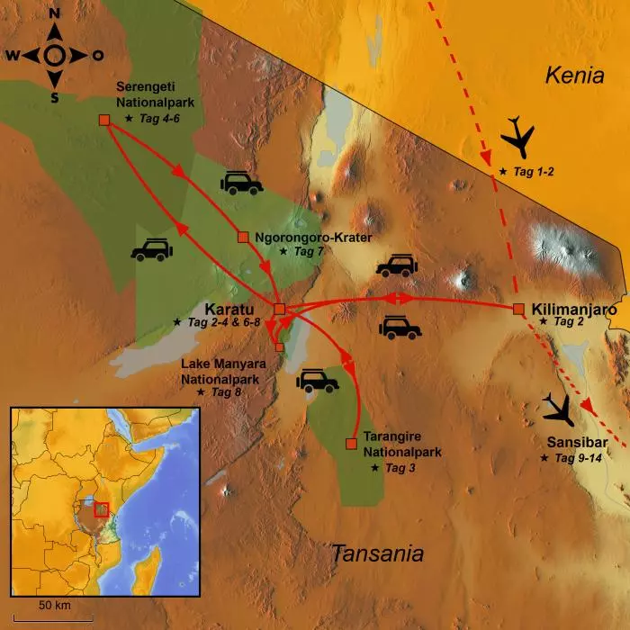 | Tag 2 | Kilimanjaro Flughafen – Highview Hotel | 200 |