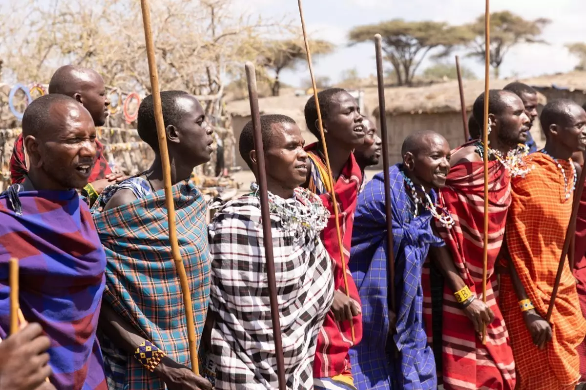 Zu Mittag genießen Sie das mitgebrachte Lunchpaket im Freien. Danach geht es zur Ngorongoro Conservation Area, wo Sie die Masai in ihrer roten Kleidung in einem Dorf vor Ort treffen. Hier erleben Sie das Leben in einem Masai-Dorf, Sie sehen ihre Gebrauchskunst, die hauptsächlich aus Perlenarbeiten besteht. Die Menschen möchten gerne handeln und bieten wunderschönen Schmuck. Denken Sie daran, dass der Preis verhandelbar ist! Genießen Sie die nun ganz andere Landschaft. Anstatt der flachen Ebene sieht man nun Hügel mit Bäumen, hinter denen sich Giraffen verstecken.