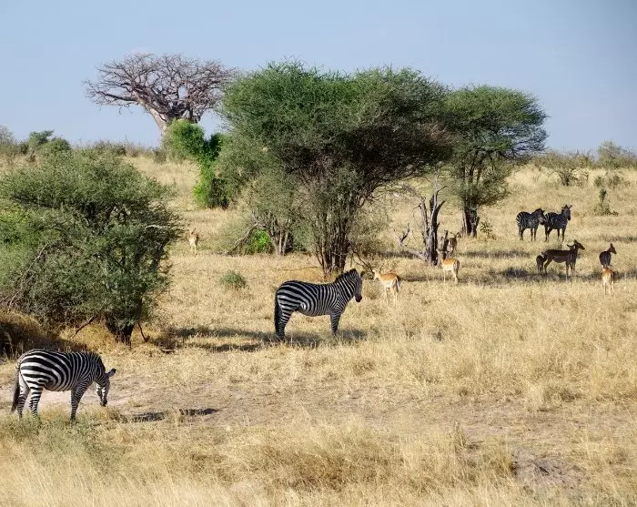 Bei Ihrer Ankunft am lokalen Flugstreifen werden Sie wieder von einem Guide begrüßt, der Sie zu Ihrer Lodge bringt. Hier werden Sie die nächsten drei Nächte verbringen. Sie werden wahrscheinlich feststellen, dass die Luft hier trockener ist als in Nyerere, und die Hitze wird sich wahrscheinlich angenehmer anfühlen. Mit etwas Glück werden Sie die ersten Tiere auf der Fahrt zur Lodge sehen, aber viele Tiere suchen mitten am Tag nach Schatten, wenn die Sonne am höchsten steht.