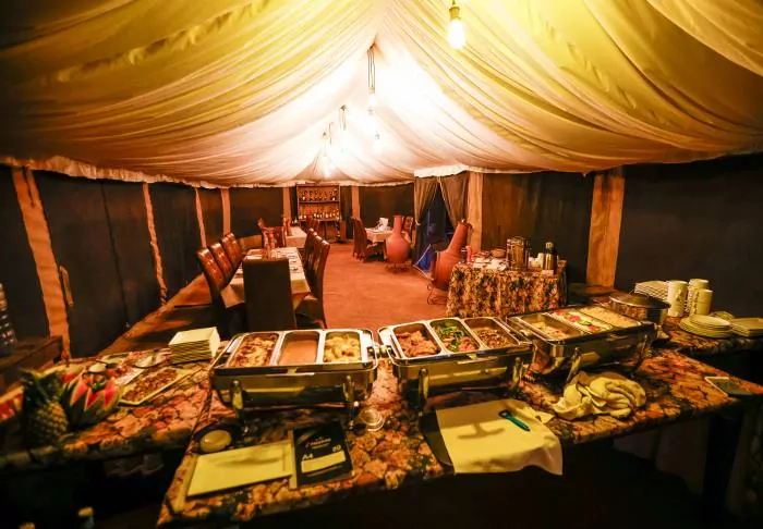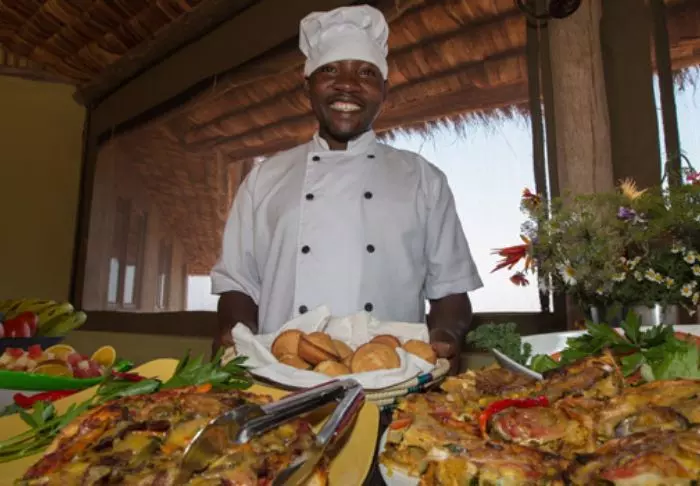Essen und Trinken werden hier groß geschrieben. Alles ist lokal und biologisch, soweit dies überhaupt möglich ist. Generell wird im Camp großer Wert auf Nachhaltigkeit gelegt. Alle Materialien stammen aus Tansania, und das Camp wird zu 100 % mit Solarzellen betrieben.