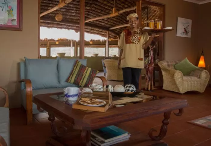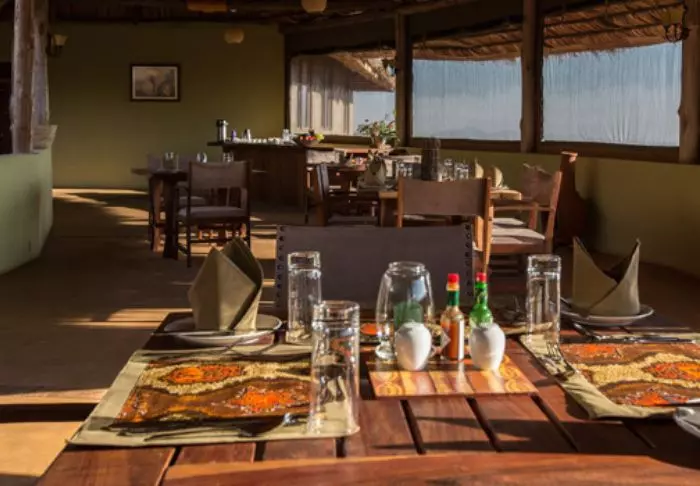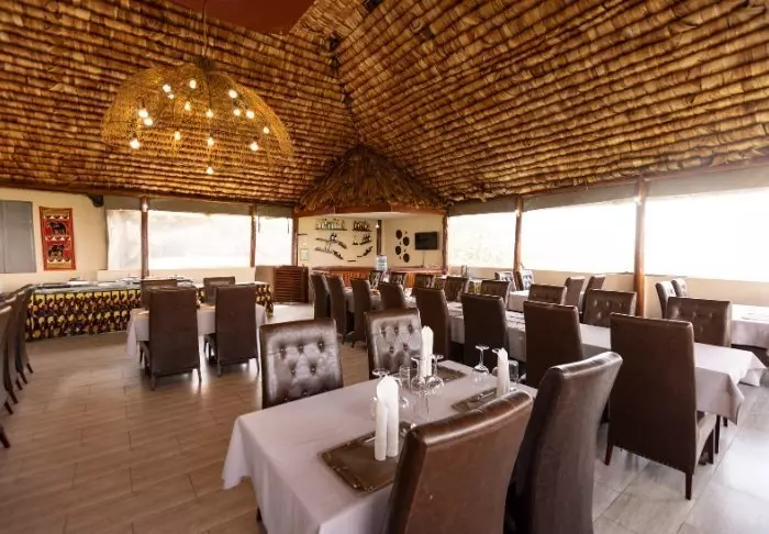 Die Mahlzeiten werden im gemütlichen Restaurant eingenommen. Die Rezeption ist meist ein natürlicher Versammlungsort zu verschiedenen Tageszeiten. Es ist nämlich der einzige Ort mit WLAN (soweit das afrikanische Internet dies zulässt).