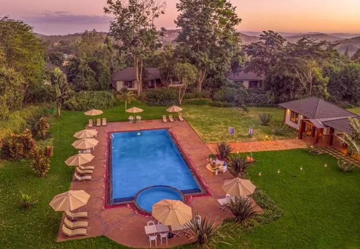 Es gibt hier 41 Zimmer, alle mit einer Veranda und Aussicht auf das fruchtbare Tal mit Kaffeeplantagen, in denen es die Elefanten lieben, zu grasen. Auch das Hotel hat eine eigene Kaffeeplantage. Der Kaffee kann sowohl im Hotel genossen als auch für zu Hause gekauft werden. Das Hotel verfügt darüber hinaus über einen eigenen Bio- Obst- und Gemüsegarten.