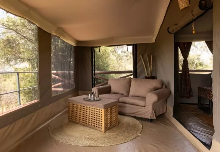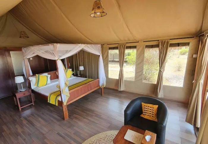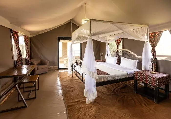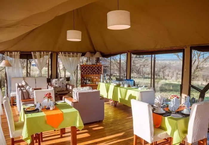 Das Camp ist ein klassisch-afrikanisches Safaricamp mit rustikalen und komfortablen Kanevas-Zelten. Die Natur liegt direkt vor dem Eingang. Es ist nicht ungewöhnlich, dass in der Nacht wilde Tiere ins Lager kommen. Rund um das Camp können Sie sowohl Gazellen als auch Antilopen, Zebras und manchmal sogar Elefanten und Hyänen sehen.
