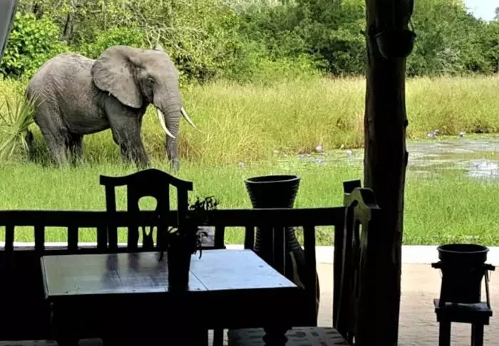 Mit etwas Glück sehen Sie vor dem Zaun der Lodge sowohl Hyänen als auch Büffel und Elefanten. Die Fahrt dorthin führt über enge Straßen und durch kleine Dörfer. Sofort machen sich Ruhe, Entspannung und ein Gefühl der Naturverbundenheit breit.