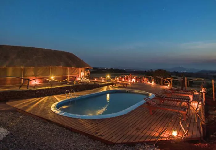 Genießen Sie nach einer Safari ein erfrischendes Bad im kleinen Pool, und gönnen Sie sich abends ein Getränk am Lagerfeuer. Auch auf das Abendessen können Sie sich freuen. Die Lebensmittel stammen nämlich von den Feldern in der Umgebung der Lodge, und auch der Kaffee wird natürlich regional angebaut!