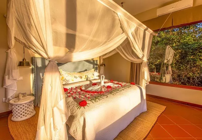 Die lediglich 7 Zelte ruhen alle auf einer eigenen Plattform ein Stück über dem Boden und bieten eine herrliche Aussicht auf die wunderschöne, umliegende Natur. Die Wände aus Canvas garantieren, dass Sie auch nachts den Geräuschen des Busches lauschen können. Die Zeltwände bestehen aus Moskitonetzen, sodass Sie die sanfte Brise auch drinnen genießen werden.