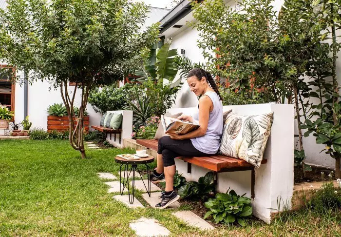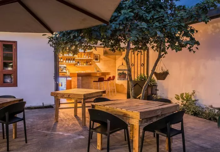 Der gemütliche Aufenthaltsraum lädt zu einem Nachmittag mit einem guten Buch ein, und die überdachte Terrasse ist der perfekte Ort, um eine Tasse Kaffee zu trinken und das hervorragende WLAN des Hotels zu nutzen. Im kleinen Garten gibt es einen Pool mit Liegestühlen, und im Anschluss an das Haus befindet sich eine gut eingerichtete Bar.