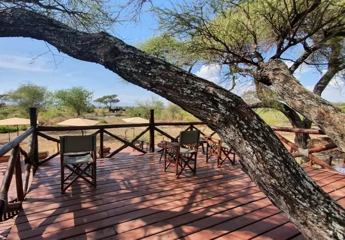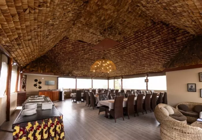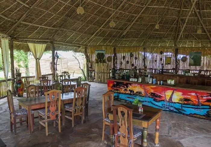 Vom Restaurant aus hat man eine malerische Aussicht auf das Gebiet, das entlang der Migrationsroute liegt. Das Gebiet beherbergt außerdem große Herden an verschiedenen Antilopenarten, Büffel, Elefanten, Flamingos und andere Vögel.