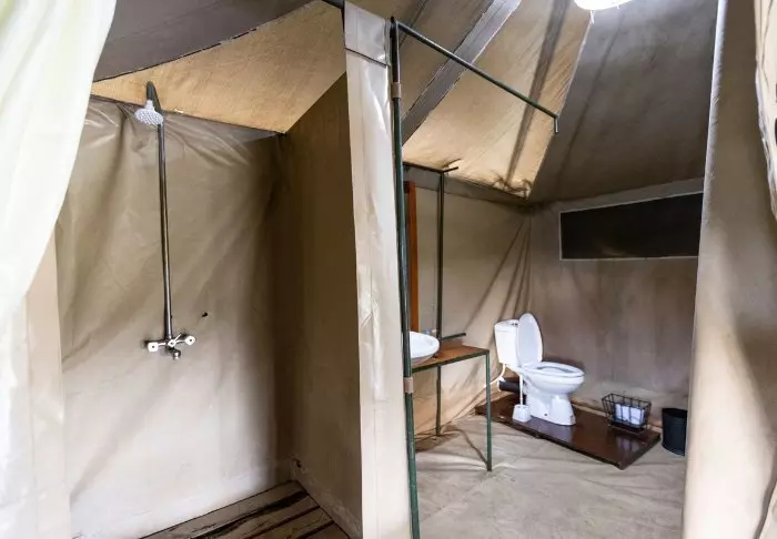 Das Ngorongoro Wild Camp besteht aus 20 großen Zelten mit voller Raumhöhe und festem Boden. Die Zelte wurden auf Pfählen errichtet, was für eine atemberaubende Aussicht auf das Gebiet vor der Terrasse des Zeltes sorgt. Alle Zelte verfügen über ein eigenes großes Badezimmer mit Fliesen. Es gibt fließendes Wasser, eine Toilette und eine Dusche.