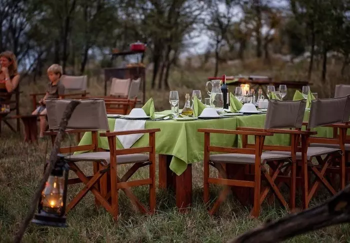 Die Mahlzeiten werden normalerweise im großen Zelt eingenommen, es sei denn, es wird draußen im Busch der Tisch gedeckt. Freuen Sie sich auf den afrikanischen Sternenhimmel am gemütlichen Lagerfeuer.