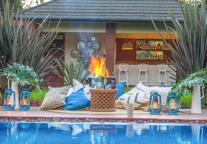 Abends wird häufig ein Lagerfeuer im Garten angezündet. Bei einem Getränk vor dem Abendessen können Sie sich mit anderen Gästen über Ihre Reise unterhalten.