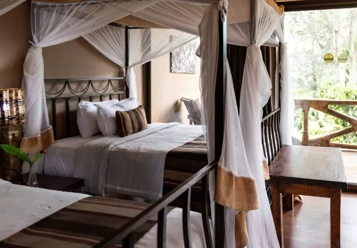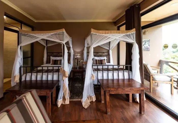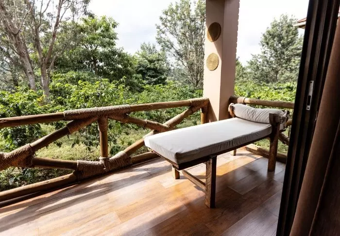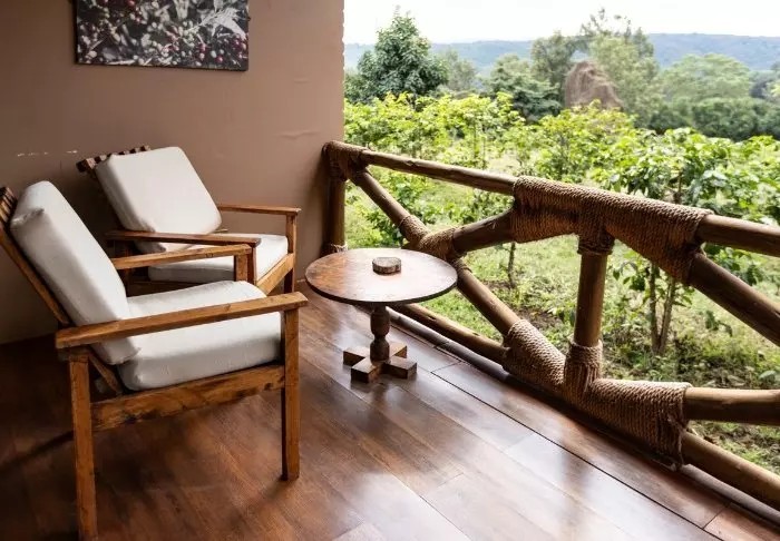 Die Zimmer der Highview Coffee Lodge liegen etwas abseits, ca. 100 Meter vom Hotel entfernt. Die Lodge besteht aus 4 Doppelhäusern mit zwei Zimmern in jedem Haus. Sie sind voneinander verschoben am Hügel errichtet worden, sodass rundherum Luft und Platz ist. Alle sind mit einem großen Bad und WC, einer eigenen Veranda und viel Platz, um mit einem Buch hier zu entspannen, ausgestattet. Zu den Zimmern gehört ein eigenes Speisezelt, in dem man das Frühstück und/oder Abendessen einnimmt, während man die Aussicht auf das Tal mit den Kaffeeplantagen genießt.