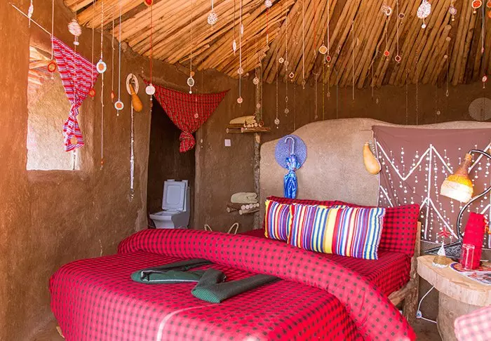 Es gibt 11 Hütten hier, die alle in traditionellem Masai-Stil errichtet worden sind, allerdings mit einer Ausnahme: Sie haben hier alle Annehmlichkeiten wie Elektrizität, Toiletten, fließendes Wasser und eine Dusche mit warmem Wasser.