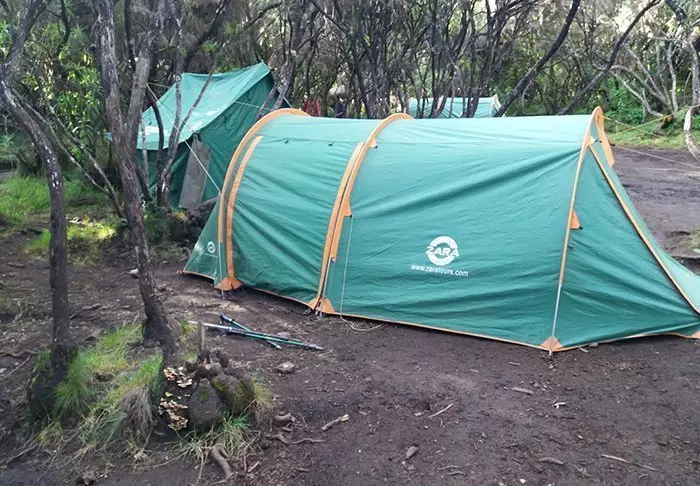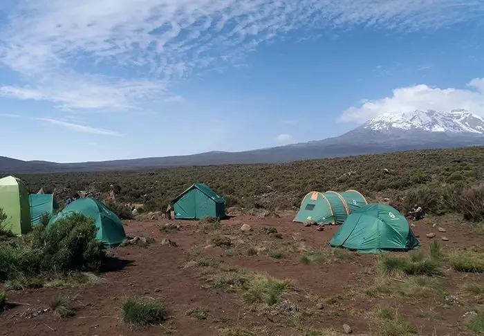 Auf der Wanderung zur Spitze des Kilimandscharos übernachten Sie in verschiedenen Lagern im Zelt. Sie schlafen auf dünnen Isomatten in 2-Mann-Zelten.