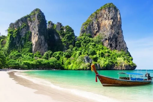 Krabi bietet eine Fülle von Aktivitäten und wunderschöne Strände, mit Blick auf die vielen Kalksteinklippen und kleinen Inseln, die charakteristisch für die Gegend sind.