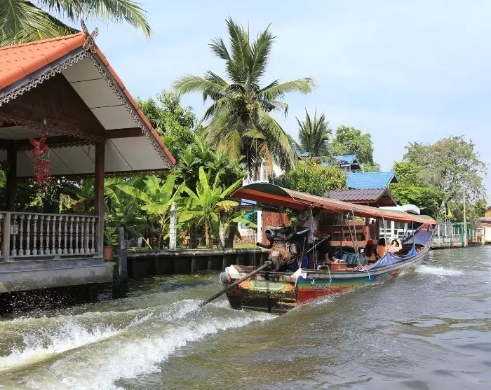 Unterwegs erhaschen Sie Blicke auf mehrere beliebte Sehenswürdigkeiten Bangkoks, die abends wunderschön beleuchtet sind. Darunter befindet sich das Demokratiedenkmal, das den Übergang Thailands von der absoluten zur konstitutionellen Monarchie gedenkt. Das Denkmal steht an der belebten Ratchadamnoen Avenue, nicht weit entfernt vom Großen Palast.
