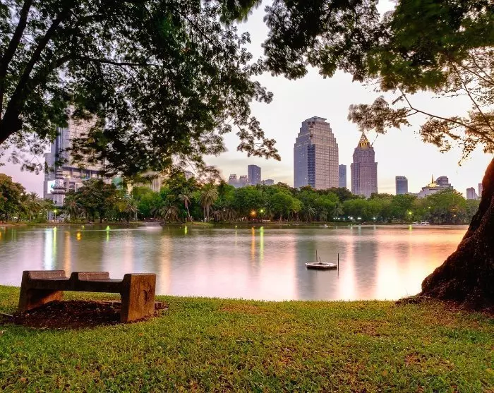 Nach ausgedehnten Erkundungen Bangkoks in der tropischen Hitze und dem geschäftigen Verkehr wird es sicherlich Momente geben, in denen Sie von grüneren und ruhigeren Orten träumen. Hier können Sie die Parks Lumpini oder Benjakiti besuchen. Sie können zudem die westliche Flussseite erkunden, wo Sie eine ganz andere Welt ohne Wolkenkratzer und hupende Tuk-Tuks erleben. Sie erleben hier das traditionelle Bangkok und ein Labyrinth aus Kanälen mit Stelzenhäusern und Briefträgern, die mit dem Boot navigieren.