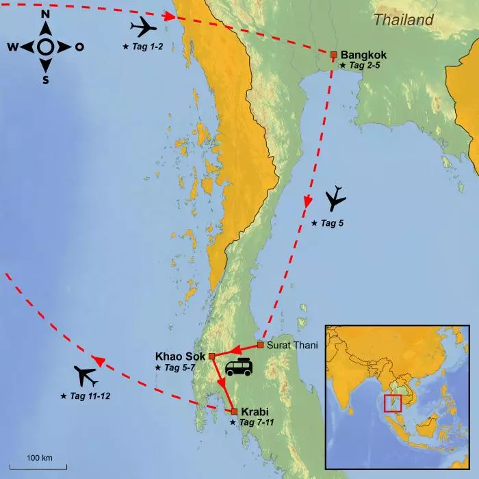 Die Reise endet mit einem herrlichen Badeurlaub in Krabi, wo Sie an den schönen Sandstränden entspannen, den Blick auf die majestätischen Kalksteinfelsen genießen und spannende Ausflüge zu nahegelegenen Inseln und Attraktionen unternehmen können.