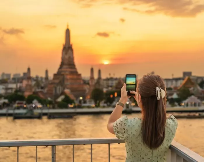 Beim Fortbewegen in Bangkok müssen Sie sich keine Sorgen über den berüchtigten Verkehr machen, da die Stadt eine breite Palette an Transportmöglichkeiten bietet. Viele nutzen Tuk-Tuks oder Grab, doch auch die Flusstaxis sind ein Hit und ein bedeutender Teil des öffentlichen Verkehrs, mit Haltestellen an vielen der wichtigsten Sehenswürdigkeiten der Stadt. Außerdem gibt es den Sky Train, der sich zwischen den Wolkenkratzern der Stadt schlängelt und eine gute, schnelle und erschwingliche Möglichkeit bietet, sich fortzubewegen.