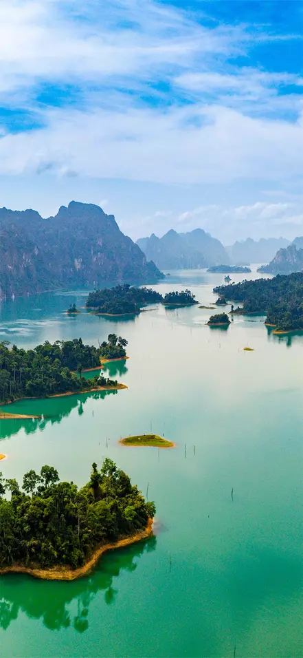 Ein Teil des Khao Sok Nationalparks besteht aus dem 165 km² großen, smaragdgrünen Cheow Lan See. Der See entstand durch den Bau des Rajjaprabha-Damms im Jahr 1987, womit das Gebiet überflutet wurde. 385 lokale Familien wurden umgesiedelt und entschädigt; Tiere wurden über Flüsse transportiert und per Hubschrauber ausgeflogen. Während das Gebiet zunehmend durch Regen- und Flusswasser geflutet wurde, verwandelte sich ein Teil des Regenwaldes in einen See. Die einst zwischen den Baumkronen emporragenden Kalksteinklippen wurden zu kleinen Regenwaldinseln, die heute das smaragdgrüne Wasser durchbrechen. Kein Wunder, dass Cheow Lan manchmal als Thailands Antwort auf Guilin, einen der schönsten Orte Chinas, beschrieben wird.