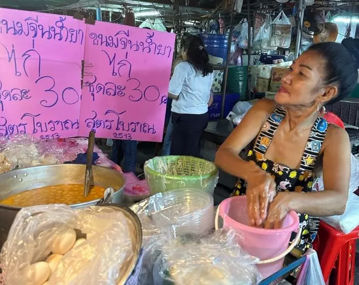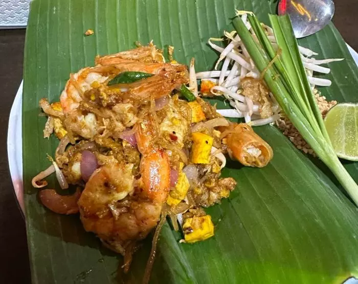 Sie gelangen zu einem beliebten Pad Thai-Restaurant, das als Bib Gourmand-Restaurant klassifiziert ist. Bib Gourmand ist ein vom Michelin Guide für Restaurants verliehenes Label, das feine Küche zu moderaten Preisen anbietet. Hier wird Ihnen das schmackhafte Nationalgericht auf Bananenblättern serviert, und Sie können auch einen Blick in die Küche werfen und sehen, wie es zubereitet wird.
