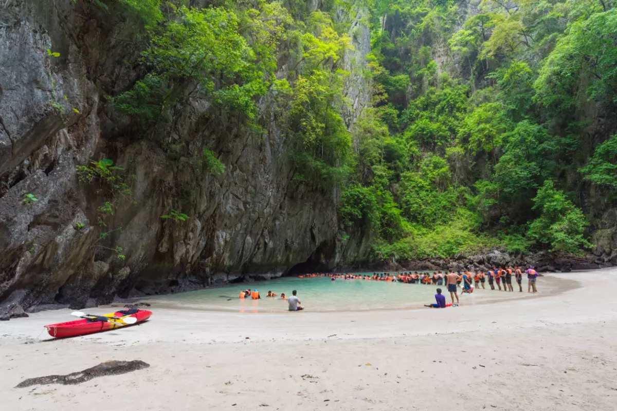 Das Tolle an Koh Mook ist, dass Sie den Strand an beiden Seiten der Insel nutzen können. Wenn Sie Lust auf Aktivitäten oder Ausflüge haben, können Sie sich mit einer Massage verwöhnen lassen, ein Kajak mieten oder die größte Attraktion der Insel, die Smaragdgrotte besuchen, die nur vom Wasser aus zugänglich ist. Sie schwimmen ca. 80 Meter durch einen Tunnel. Es gibt dort nichts weiter als fluoreszierende Fische, die leuchten. Wenn Sie durch die Insel in die Grotte gelangen – mitten auf der Insel – wird ein verstecktes Paradies mit Sandstrand, grünen Bäumen und Pfählen sichtbar.