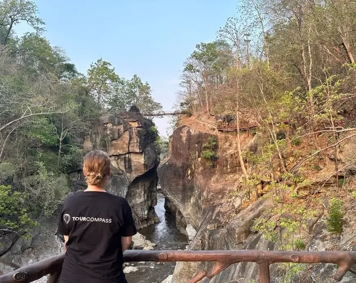 Anschließend geht es weiter zum Nationalpark Ob Luang, der für seine dramatischen Landschaften bekannt ist. Hier erleben Sie die schmale und tiefe Schlucht von Ob Luang, wo der Fluss Mae Chaem durch steile Klippen fließt. Die Schlucht wird auch als „Kissing Cliff“ bezeichnet, da sie an zwei Gesichter erinnert, die sich küssen. Die spektakuläre Schlucht, die von üppigen Wäldern und Bergen umgeben ist, wurde im Laufe der Zeit von der kraftvollen Strömung des Wassers geformt. Der Nationalpark Ob Luang beherbergt auch mehrere archäologische Funde und prähistorische Höhlengemälde, die auf über 3.000 Jahre geschätzt werden.