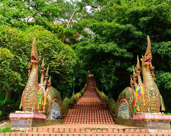 Sie landen in der zweitgrößten Stadt Thailands, in Chiang Mai, im Norden von Thailand. Diese Stadt bietet unglaublich viel Kultur, Geschichte und wunderschöne Natur. Die Stadt liegt in einem Tal, umgeben von Bergen wie Doi Inthanon, dem höchsten Gipfel Thailands. Chiang Mai ist sogar eine ehemalige Hauptstadt des alten Lanna-Königreichs, das von 1292 bis 1775 existierte. Sie werden daher viele Einflüsse aus dieser Zeit überall in der Stadt wahrnehmen.