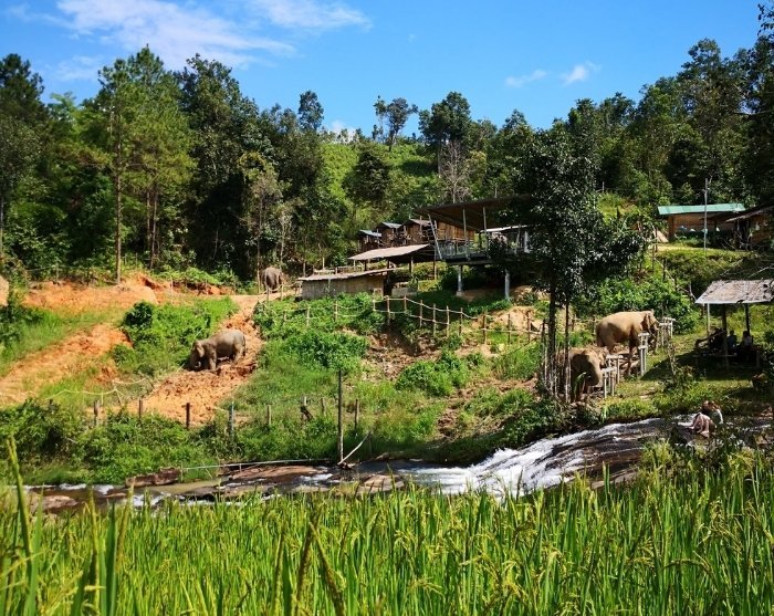 ChangChill ist eine Zufluchtsstätte für 4 glückliche, weibliche Elefanten. Hier dürfen sie nämlich einfach nur Elefanten sein. Als dieser Ort 2017 eröffnete, war dies ein großer bedeutender Schritt, den es in Thailand noch nie gegeben hatte. Die Einrichtung war nämlich zu 100 % elefantenfreundlich und wurde u. a. von World Animal Protection unterstützt. Das bedeutet, dass man in ChangChill die Elefanten so natürlich wie irgendwie möglich leben lässt. Sie ziehen frei im Tal umher, grasen, baden im Fluss, nehmen Staub- und Schlammbäder und beschäftigen sich miteinander. Als Besucher können Sie daher auch nicht mit den Elefanten interagieren, aber Sie können sie aus der Ferne beobachten und sehen, wie sie sich in freier Wildbahn und somit ganz natürlich verhalten.