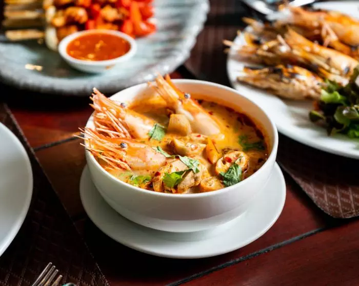 Nach Einbruch der Dunkelheit wird ein leckeres Buffet mit Gerichten aus der thailändischen und westlichen Küche eröffnet, während Sie von Live-Musik unterhalten werden.