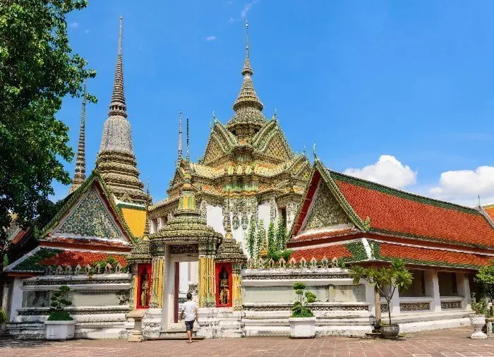 Von dort geht es zum ersten Highlight des Ausflugs, dem wunderschönen Tempel Wat Pho, dem größten und ältesten Tempel Bangkoks. Der Tempel Wat Pho war einst die erste öffentliche Universität von Thailand und sogar eine der ältesten Thaimassageschulen des Landes. Der Tempel gehört zu einer großen Anlage aus verschiedenen Tempelgebäuden und einem Kloster mit 300 Mönchen. Der Tempel Wat Pho ist besonders bekannt für seinen riesigen Goldbuddha, der 46 Meter lang und 15 Meter hoch ist. Der Buddha besteht aus Gips und Ziegeln und wurde anschließend mit Blattgold überzogen. Im Tempel findet man außerdem die größte Sammlung an Buddha-Statuen.