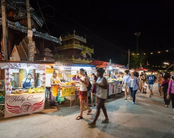 Zuerst geht es zum regionalen Markt Chiang Mai Gate Market an der Südpforte. Dort können Sie verschiedene regionale Gerichte und Snacks kosten.