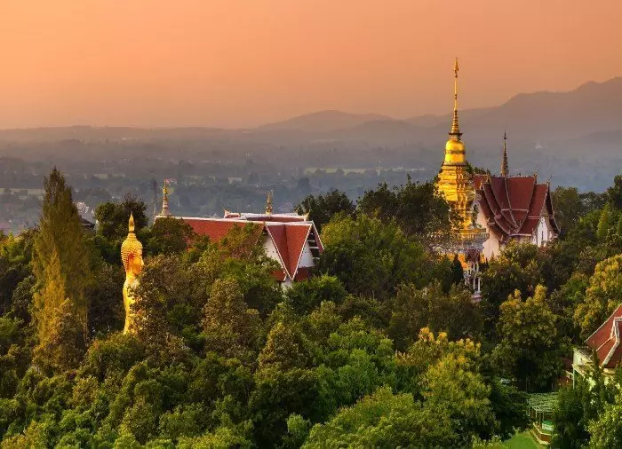 Wenn Sie alle Details des Tempels in Ruhe angeschaut haben, sollten Sie sich umdrehen. Vor Ihnen liegt Chiang Mai. Die Aussicht vom Gipfel des Berges ist einfach fantastisch. Es ist fast nicht zu sagen, ob der Tempel oder die Aussicht am beeindruckendsten sind. Beides ist auf jeden Fall wunderschön!