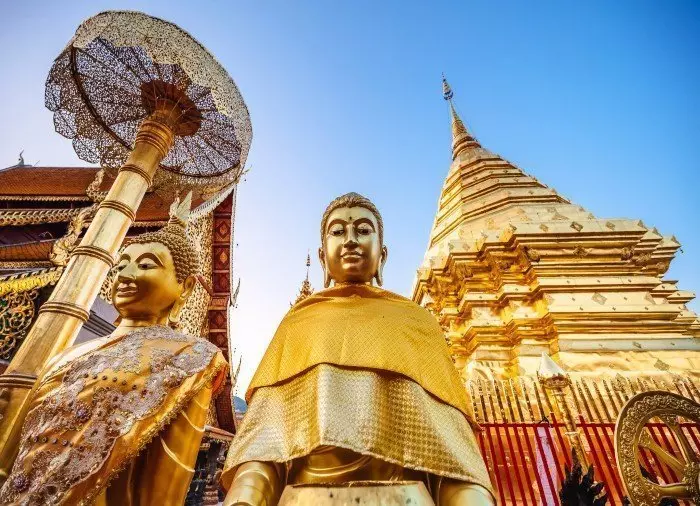 Vom Hotel werden Sie aus der Stadt gefahren, den Berg Doi Suthep hinauf, welcher auch dem 1383 errichteten Tempel den Namen gegeben hat. Überall um Sie herum blühen exotische Büsche und Bäume. Die Luft wird allmählich kühler, je weiter nach oben zum Gipfel Sie kommen.
