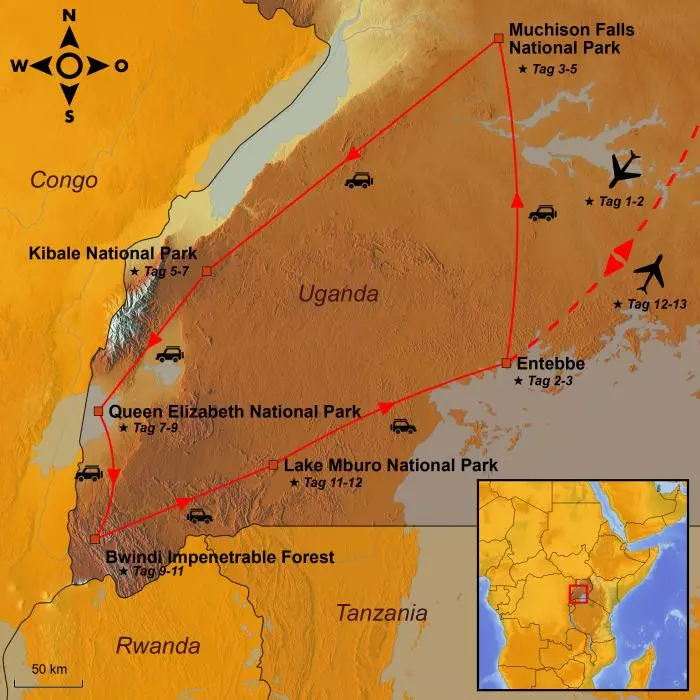 Die Hauptattraktion in Bwindi sind natürlich die seltenen Berggorillas, und eine Begegnung mit ihnen steht auf der Wunschliste vieler Reisender. Die Reise zu den Gorillas ist jedoch körperlich anspruchsvoll, und Kinder unter 15 Jahren dürfen nicht am Gorilla-Tracking teilnehmen.