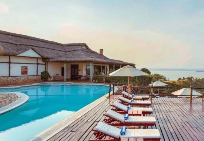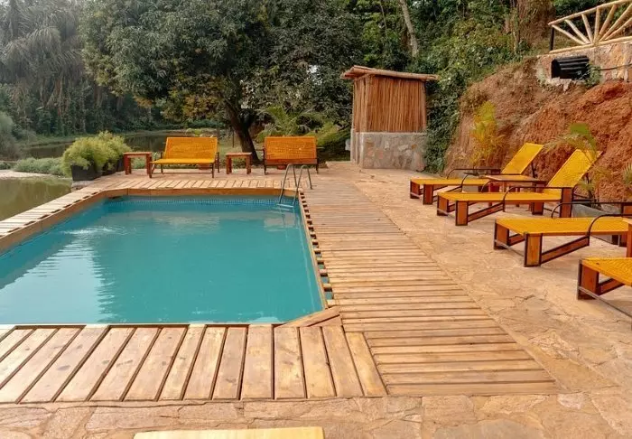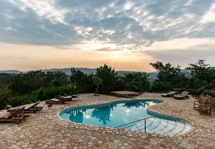 Vom Poolbereich aus können Sie sich in der großartigen Aussicht verlieren, während Sie sich im Swimmingpool treiben lassen oder unter dem Sonnenschirm auf einem Liegestuhl entspannen. Neben dem Swimmingpool befindet sich das Restaurant der Lodge, das eine große Auswahl an authentisch afrikanischen Gerichten sowie Gerichte aus der internationalen Küche anbietet. Die Rohwaren sind frisch. Täglich liefern einheimische Fischer ihren Fang, der unter anderem aus dem Kazinga-Kanal oder dem Edwardsee stammt.