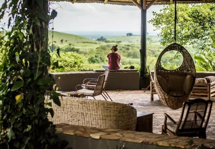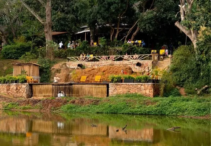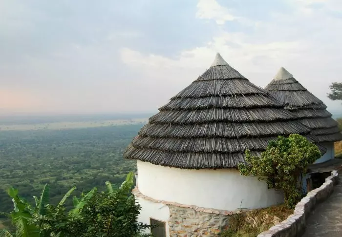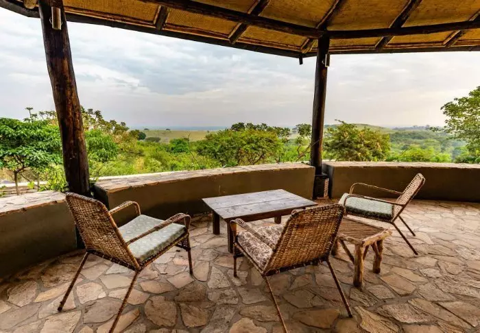 Die rustikale Kyambura Gorge Lodge liegt am Rande des Queen-Elizabeth-Nationalparks auf einem der Hänge der Kyambura-Schlucht. Durch ihre Lage hat man eine atemberaubende Aussicht auf die Savanne und die Kyambura-Schlucht, die im Volksmund auch „Tal der Affen“ genannt wird.
