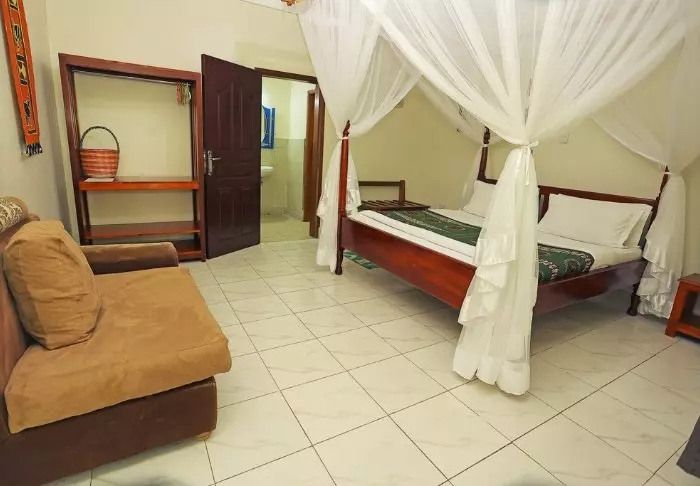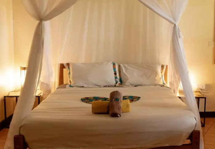 Die Lodge verfügt über 12 Zimmer, die einfach, aber gemütlich eingerichtet sind und Ihnen und Ihrem Gepäck ausreichend Platz bieten. Jedes Zimmer ist mit einem privaten Badezimmer und einer Toilette ausgestattet, und Moskitonetze sind um die Betten gespannt.