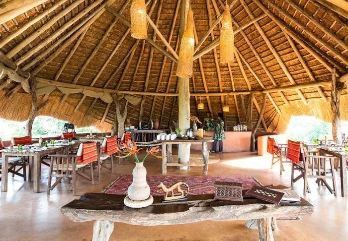 Die Lodge besteht aus Hütten und Zelten, die jeweils ansprechend mit eigenem Badezimmer und Veranda ausgestattet sind. Für den Bau der Lodge wurden ausschließlich lokale Materialien verwendet, und sie wurde von einheimischen Handwerkern errichtet, um sicherzustellen, dass das Einkommen den lokalen Gemeinden zugutekommt.