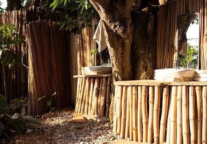 Die Lodge wurde von ansässigen Handwerkern ausschließlich mit regionalen Materialien errichtet, um die Lodge so der Umgebung anzupassen. Darüber hinaus ist der Großteil der Möbel und Dekorationen Handarbeit von Einheimischen.