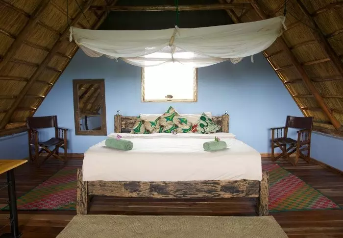 Die Lodge besteht aus strohgedeckten Cottages und großen Zelten mit Leinwandwänden. Alle Zimmer sind rustikal, aber komfortabel eingerichtet und verfügen über ein eigenes Badezimmer, einen Safe, Moskitonetze über den Betten, solarbetriebene Beleuchtung und USB-Ladegeräte. Die gesamte Lodge betreibt ihre Energieversorgung aus Solarenergie, daher sind Geräte wie Haartrockner nicht gestattet.