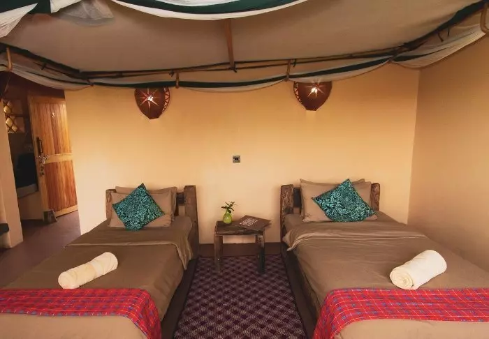 Die Lodge kombiniert Komfort mit authentischen Safari-Erlebnissen. Die eleganten Zimmer sind geschmackvoll im ostafrikanischen Stil eingerichtet und bieten moderne Annehmlichkeiten wie eine Klimaanlage, eine Kaffeemaschine und ein eigenes Bad.